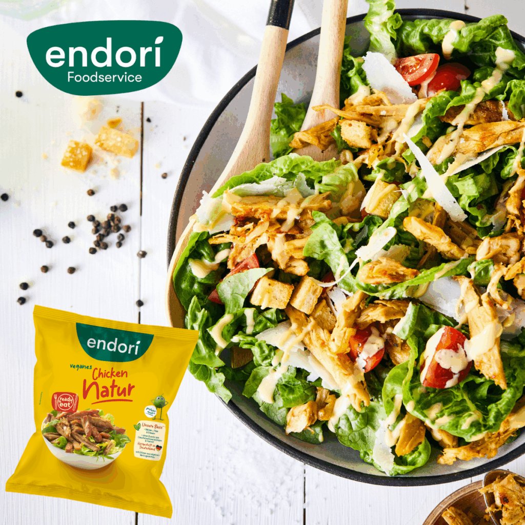 Das vegane Chicken ist ein vielseitiger, ready-to-eat Proteinallrounder – zart wie Hühnchen, nachhaltig produziert und sofort servierfertig für kalte und warme Gerichte in der Proküche.