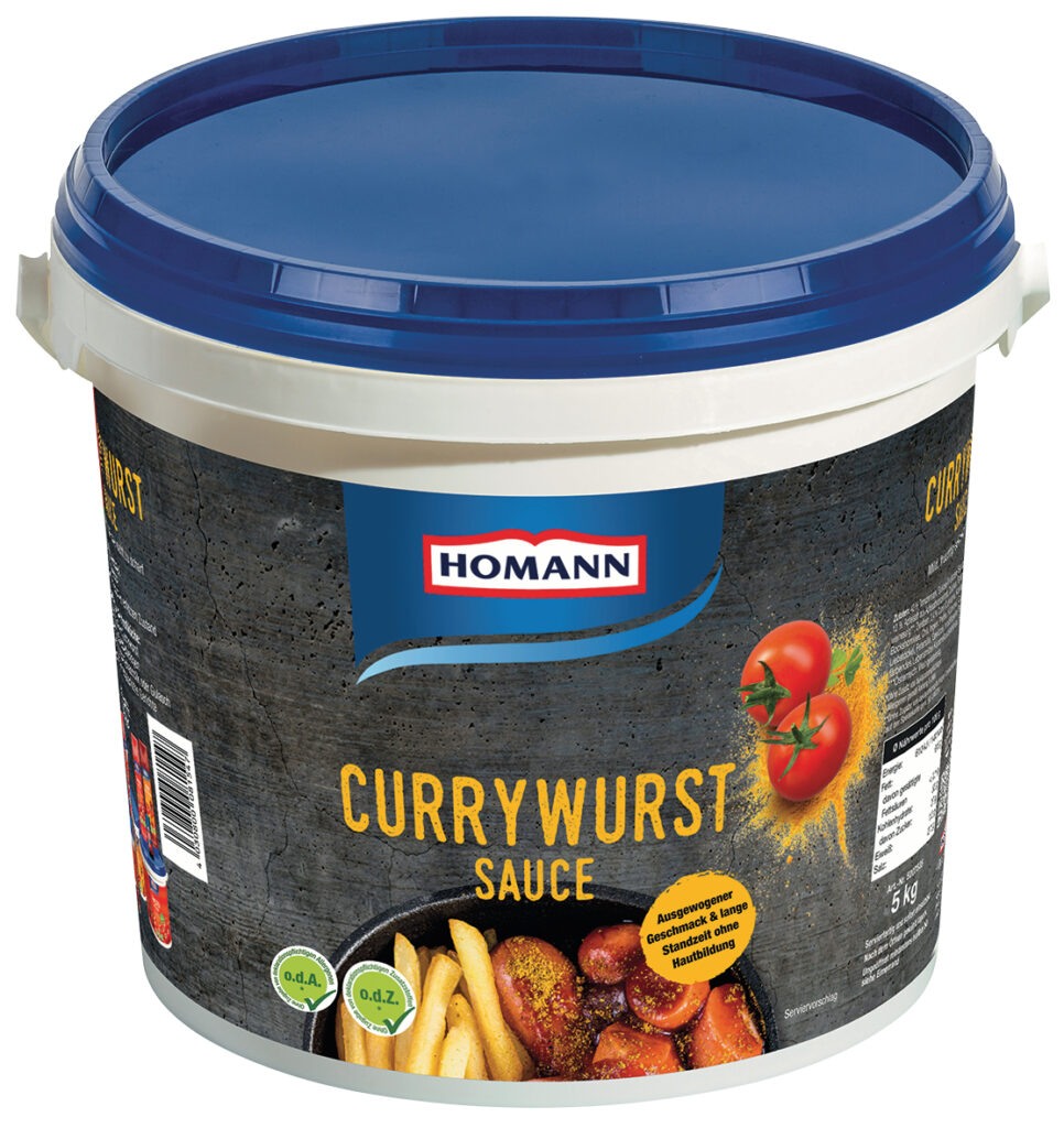 Die Currywurst Sauce enthält u.a. 42 % Tomatenmark, 12 % Apfelsaft, Koriander, Kurkuma und Chili, aber keine deklarationspflichtige Allergene oder Zusatzstoffe.