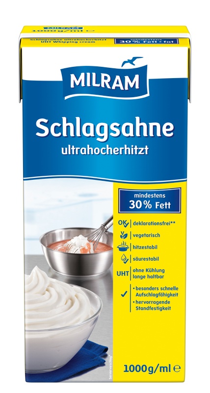 Die Schlagsahne 30 % Fett überzeugt mit einer schnellen Aufschlagfähigkeit, Standfestigkeit, Säurestabilität und langer Haltbarkeit – ideal für süße und herzhafte Anwendungen.