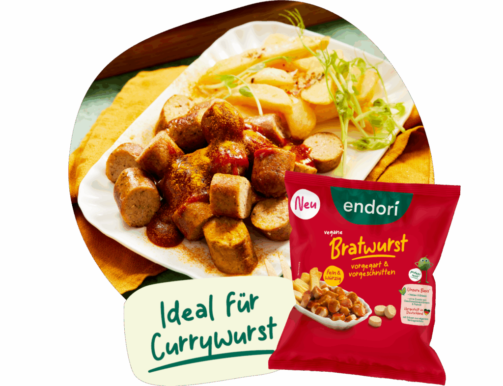Die vorgegarte und vorgeschnittene vegane Bratwurst von Endori ist eine schnelle, gelingsichere und nachhaltige Lösung für die pfanzliche Profiküche. Hergestellt in Deutschland mit Erbsen aus eigenem Vertragsanbau.