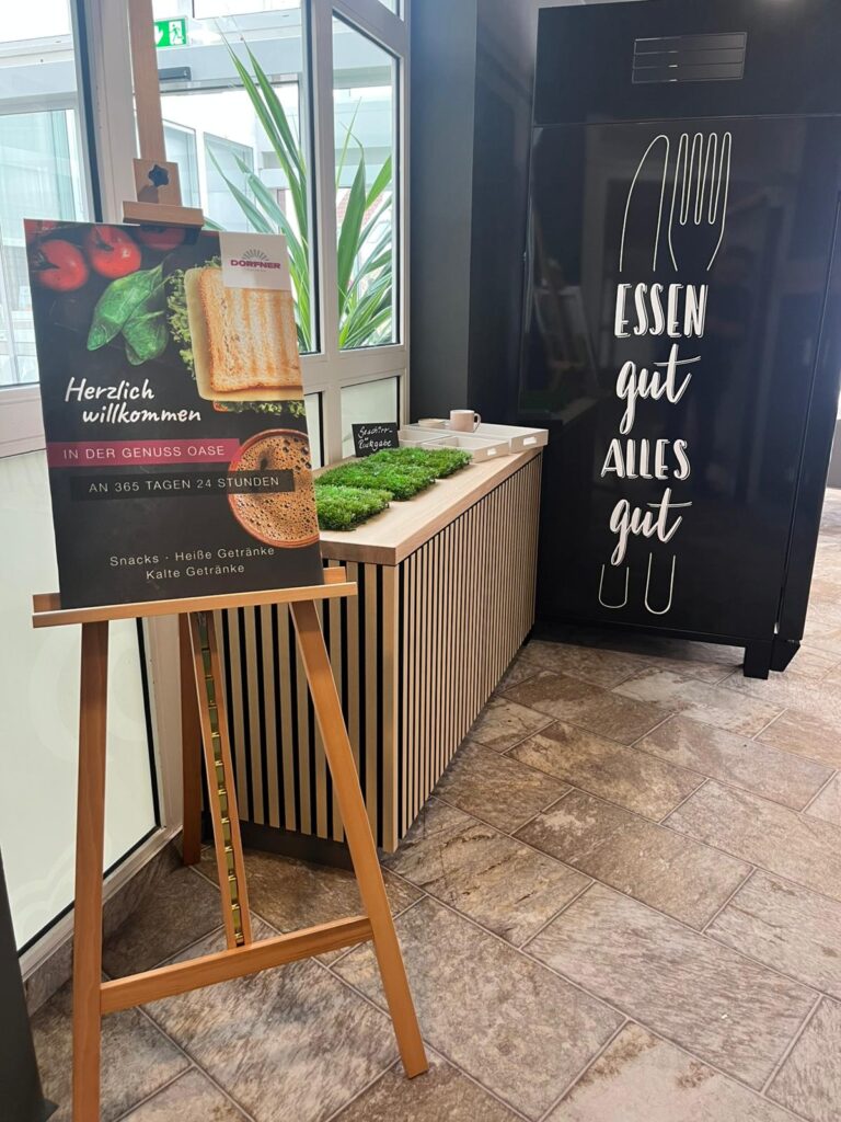 Im Saale-Krankenhaus Calbe steht den Patientinnen und Patienten sowie den Mitarbeitenden seit der Übernahme durch Dorfner Catering eine vielfältige, hochwertige Auswahl an Speisen rund um die Uhr zur Verfügung. Neben bewährten Buffets sorgen zwei Kühlschränke ganztägig für die Bereitstellung frisch zubereiteter Snacks, Salate und kompletter Gerichte. An den Automaten können die Gäste sowohl bar als auch mit Karte bezahlen.