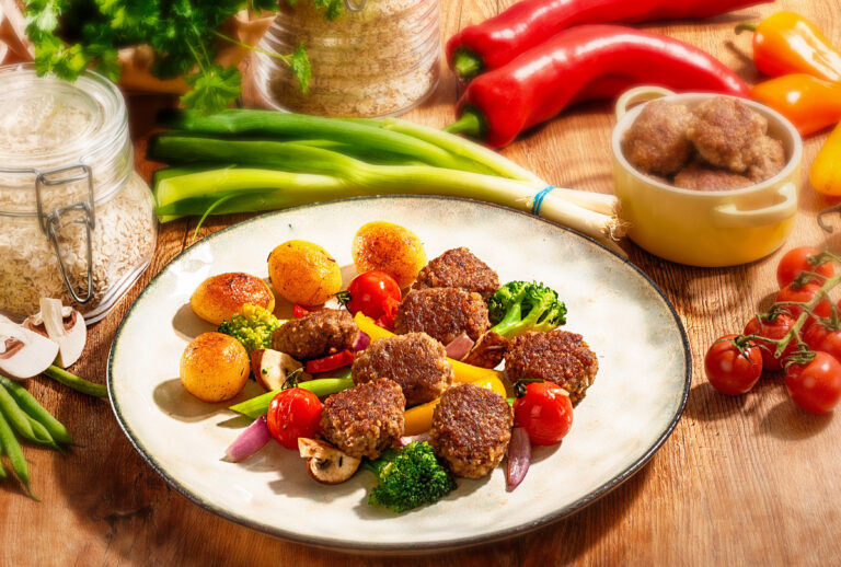 Im Mittelpunkt der neuen Fleisch-Convenience steht der Einsatz regionaler Gerste. Sie ersetzt einen Teil des Fleisches und verbessert so die Nährwerte der Produkte. Laut Hülshorst sorgt die Gerste als natürliche, nicht hochprozessierte Zutat für weniger Fett und eine günstigere CO₂-Bilanz, ohne den gewohnten Geschmack zu verändern. Damit verbindet die neue Linie Aspekte wie Ressourcenschonung, Klimaschutz und ernährungsphysiologische Optimierung mit den praktischen Anforderungen der Schulverpflegung an Kalkulationssicherheit und gleichbleibende Produktqualität.