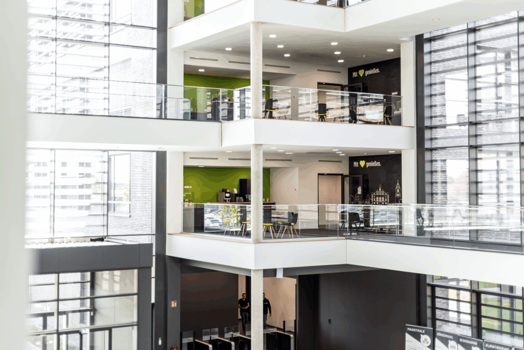 - Mitarbeiter am Standort: 2.000, Desk-Sharing-Arbeitsplätze