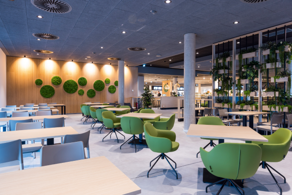 Eine einladende Atmosphäre und zeitgemäßes Design stehen dabei im Mittelpunkt. Der „Grüne Wenzel“ ist mehr als nur ein Pausenort – er ist ein durchdacht gestalteter Raum für Begegnungen, kleine Meetings und ruhige Rückzugsorte. Innen stehen 480 Sitzplätze bereit, zusätzlich lädt die großzügige Terrasse mit fast 200 Sitzplätzen im Sommer zum Verweilen und Genießen unter freiem Himmel ein.