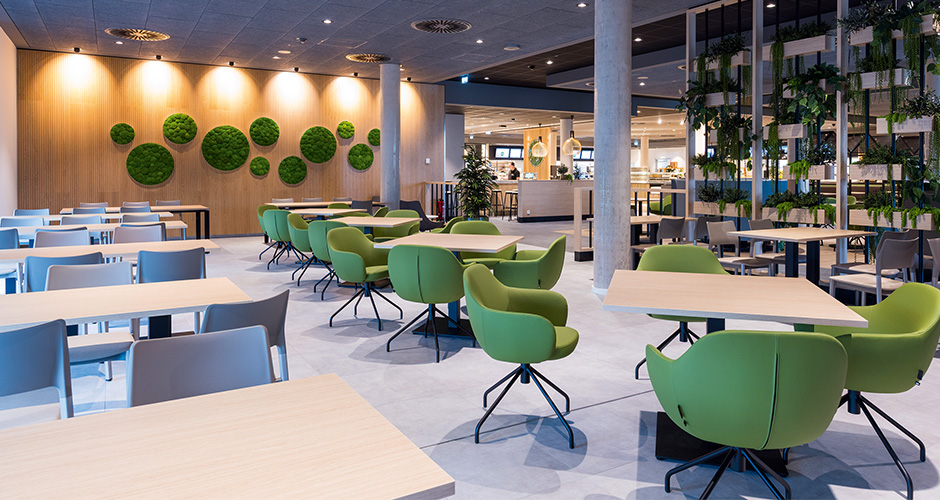 Unser Ziel war es, ein modernes Betriebsrestaurant zu schaffen, das den heutigen Ansprüchen gerecht wird und in dem Wohlfühlatmosphäre, Kulinarik und Funktionalität perfekt harmonieren. Gleichzeitig wollten wir den Markenclaim „Wir lieben Lebensmittel“ für unsere Mitarbeitenden erlebbar machen.