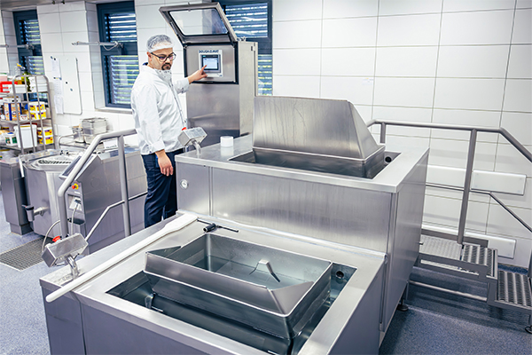 Somit auch die Eisbänke der Rührwerkskochkessel von MKN, die beim Cook & Chill-Prozess heruntergekühlt werden müssen, oder Spezialgeräte wie Reis- und Pastakocher (F. l.) von Nilma, die mit Hygiene-Kaltwasser bei +1,5°C versorgt werden.